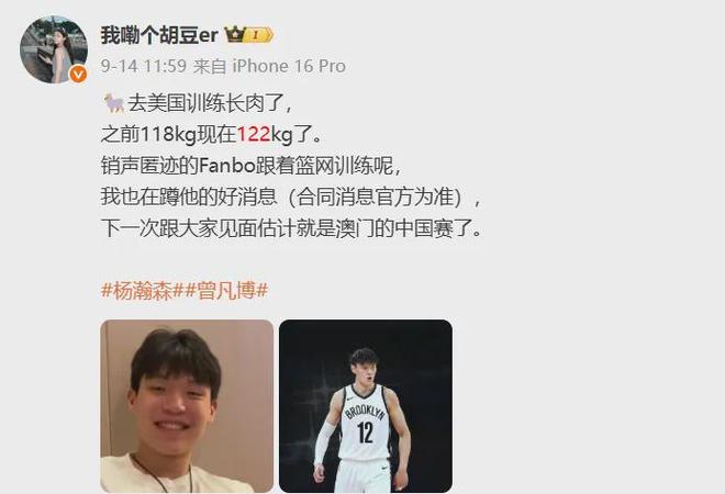 老美的体育训练是真有点东西,短短时间里杨瀚森的体重就从118公斤涨至122公斤,身体对抗能力将得到显著增强。