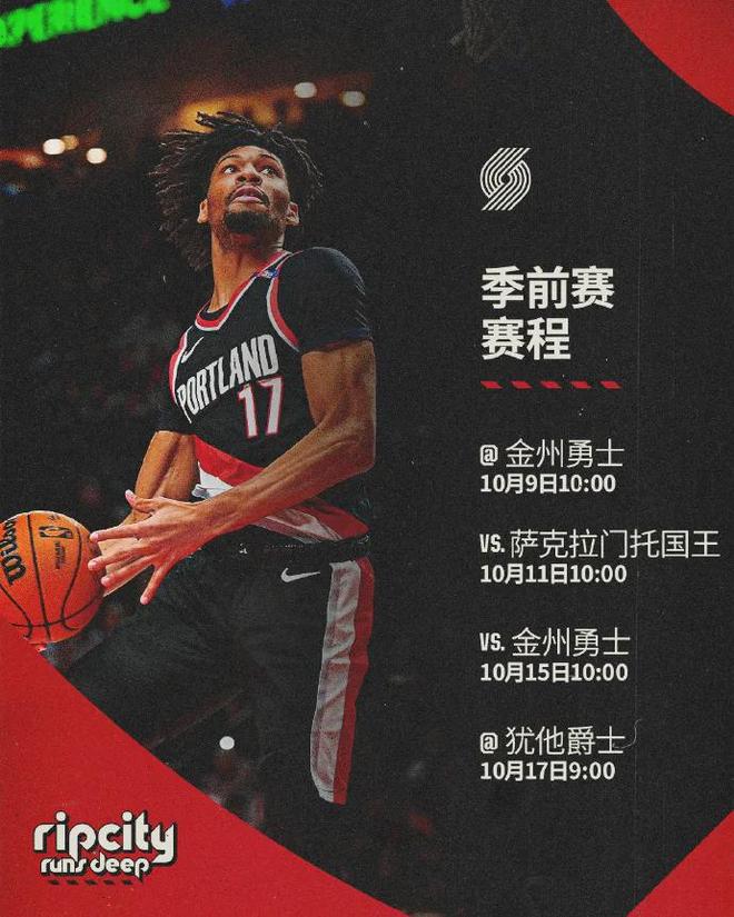今年10月份,开拓者就会正式开启备战25-26赛季的征程,季前赛安排如下:10月9日,客场VS勇士;10月11日,主场VS国王;10月15日,主场VS勇士;10月17日,客场VS爵士。