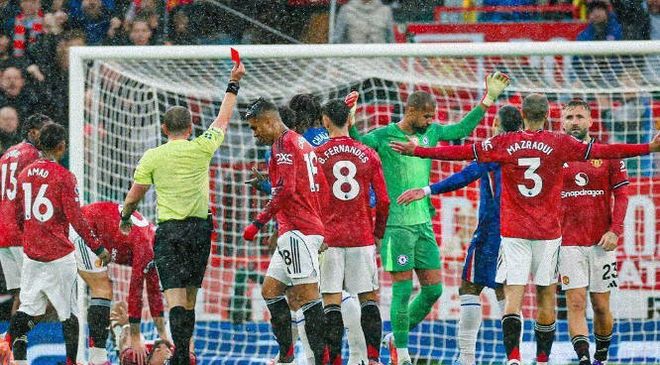 然而少打1人的切尔西还是连丢2球。而等到半场结束前,曼联后腰卡塞米罗也被罚下后,双方人数回到均等时,切尔西却因为换人次数限制,已经无法在进攻端调整太多。