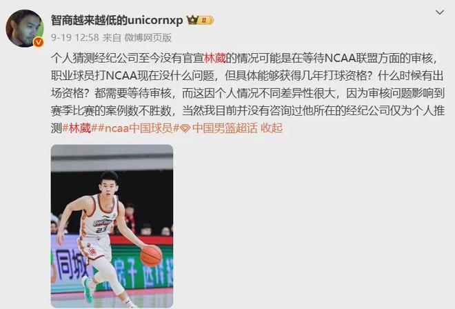 看来林葳加盟俄勒冈大学出战新赛季的NCAA板上钉钉,之所以尚未官宣,有国内媒体人猜测还在等待联盟的审核,如下图: