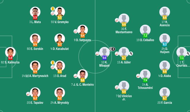 皇马首发:1-库尔图瓦、17-阿森西奥、24-赫伊森、4-阿拉巴、20-弗兰-加西亚、14-楚阿梅尼(80'6-卡马文加)、19-塞瓦略斯、15-居莱尔(80'5-贝林厄姆、30-马斯坦托诺(70'21-迪亚斯)、7-维尼修斯(70'11-罗德里戈)、10-姆巴佩(81'16-贡萨洛-加西亚)替补未出场:13-卢宁、29-纳瓦罗、8-巴尔韦德、9-恩德里克、18-卡雷拉斯、35-希门尼斯