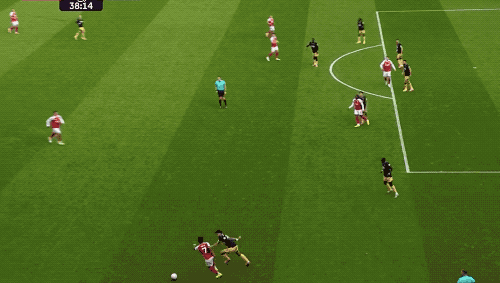 第38分钟,萨卡策动进攻,苏维门迪的直塞恰到好处,埃泽的怒射被扑出,赖斯补射,枪手取得领先。