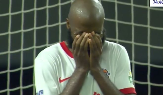 补时第10分钟,奥马尔松突入禁区被拉德马诺瓦铲倒,主裁判向拉德马诺瓦出示红牌。