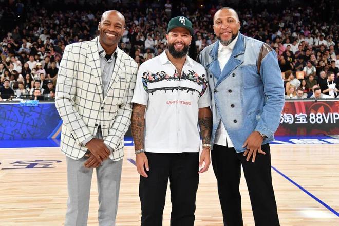 中国赛上卡特、德隆、马里昂合影当然,NBA的工资算法,和效力球龄有直接关系,劳资协议规定:球员在NBA效力超过三年有资格领取养老金。假设一名球员在NBA效力3个赛季,选择在62岁开始领养老金,按照当前的规定,他最少可以拿到5.7万美元年薪;但如果他在NBA打了10年或者10年以上,他的年度养老金可以达到21.5万美元。打球的时候,这点钱根本不算什么,毕竟现在一份正式合同的底薪也有100万美元,双向合同是底薪的一半,也有50万。更不要说现在NBA的非奢侈税全额中产合同已经干到了1410.4万,这么一想,姚明在2006年生效的,生涯签的唯一一份大合同,顶薪5年7536万,平均也就1507万美元,20年过后,NBA的收入涨得确实有点吓人。