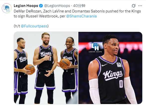 名记shams进一步报道,他的经纪人施瓦茨透露,这是一份1年360万美元合同,双方在整个休赛期,从七月开始,每个月、每周都在进行对话,他们一直保持沟通。国王一直在寻求补充控卫深度,他们上赛季替补席的得分排名第28,助攻排名第29!Shams还透露:国王的关键球员也支持威少加盟,其中之一是小萨博尼斯,他们曾在俄克拉荷马城一起打球,还有另外两名球员,德罗赞和扎克-拉文,他们和威少一样都有洛杉矶背景。此外,他还认识国王的新任助理总经理,在等待了四个月之后,这位前MVP将在萨克拉门托开始他的第18个赛季!