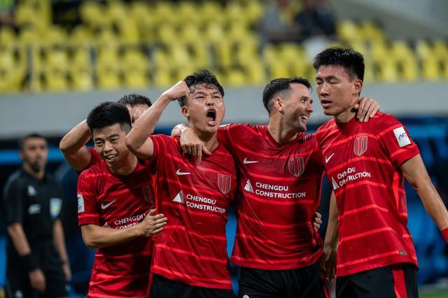 9月30日,成都蓉城队球员在比赛中庆祝进球。 当日,在亚冠精英联赛东亚区第二轮比赛中,成都蓉城队主场1比0战胜韩国江原FC队。 新华社记者 薛晨 摄