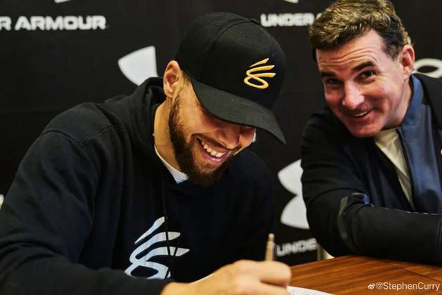 库里2023年与安德玛签约终身合同 右为安德玛创始人普兰克 图/StephenCurry微博双赢的甜蜜期在不少球迷看来,安德玛之所以能成为今天的安德玛,离不开库里以及库里身后庞大粉丝群体的支持。在库里的职业生涯初期,NBA业界受传统观念影响,对于库里单薄的身材和较为平庸的运动天赋并不看好。库里一度频繁出现伤病,甚至让不少NBA球探认为,他的天赋和发展上限都极其有限。这一点从库里新秀合同结束后续约情况便可以体现,和库里同年进入联盟的布莱克·格里芬的续约合同为5年9500万美元,而库里仅仅获得了4年4400万美元的续约合同。正因如此,在库里与金州勇士达成续约的当年,耐克也仅仅为库里提供了每年250万美元的球鞋合同。但库里也认为,耐克在谈判过程中并未对自己予以足够的重视。就在这时,安德玛迅速向库里提供了一份4年每年400万美元的球鞋合同,与库里实现了“双向奔赴”。令人难以想象的是,这次“双向奔赴”最终成为体育商业史上一次以小搏大的经典案例,实现了双赢。“当时耐克已经很成熟了,但安德玛不一样,我很看重这种从零做起的机会,安德玛将我作为他们未来商业版图的重要部分,这很打动我。”库里曾这样回忆。后续,库里通过超强的三分球投射能力打破了篮球传统认知,改变了NBA的风格,成长为NBA两届最有价值球员、历史三分王,并带领金州勇士队四次夺得总冠军。在库里逐渐成为联盟巨星的同时,安德玛也迎来了前所未有的全球曝光度,使得其品牌价值不断提升。公开信息显示,正是凭借库里球鞋的畅销,安德玛的销售额在2014年首次超过阿迪达斯,成为美国销量第二的运动品牌。2014年7月至2015年7月,安德玛市值迅猛增长,从120亿美元飙升至220亿美元,营收也达到了30亿美元。2015年,安德玛又给予库里一份9年2.15亿美元续约合同。