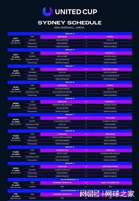 我们再来关注2026联合杯。北京时间昨晚,这项混合团体赛的赛程正式公布。处在B组的中国队将在明年的1月3日迎战比利时队,女单由朱琳对阵梅尔滕斯;男单由张之臻迎战博格斯;混双待定。1月4日迎战加拿大队,朱琳VS姆博科、张之臻VS阿利亚西姆,混双待定。