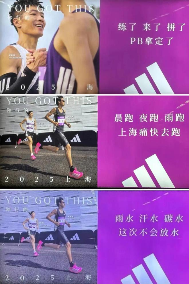 不过阿迪达斯还是抢到了几块大屏和一些地铁通道的广告位。但实际上呈现的效果和社交媒体上的自然讨论度都和NIKE在北马上“抢走的”相去甚远。
