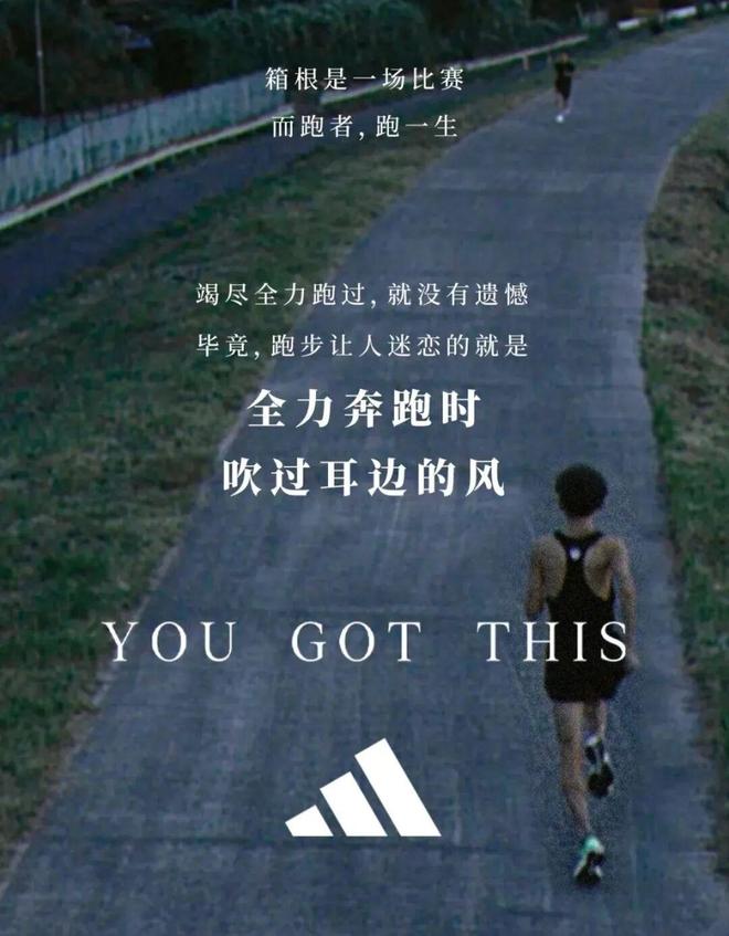 也不是所有人都喜欢NIKE的教练式文风的。我觉得今年阿迪达斯箱根驿传的广告其实就非常优秀,青春无敌的画面加上文雅纤细的字体,完美整合为一种沉静、内敛的表达。