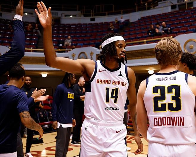 本场比赛中,虽然大急流城黄金输掉了比赛,但是被掘金下放到NBA发展联盟赛场进行锻炼的内线新星达隆-霍姆斯二世(Daron Holmes II)的表现依然是相当不错的。霍姆斯全场出场39分38秒,投篮14中8,三分线外7中4,罚球5中5,拿下了27分7篮板5助攻2盖帽的数据,还有1次失误和2次犯规,正负值也是全队较高的-3。霍姆斯在进攻端展现出了全面的得分能力,不仅能够在对手内线制造威胁,而且在外线投篮方面的表现也是相当突出的。霍姆斯在传球和策应方面的表现同样是值得肯定的,同样起到了很好的效果。霍姆斯在防守端的表现其实也并不差,同样是能够发挥出一定的效果的。在本场比赛中,霍姆斯也是又一次打出了攻守兼备的表现,只是对手的表现更加出色,他们最终还是输掉了比赛。