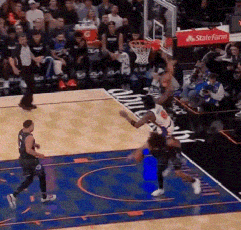 晃(绊?)翻防守后的三分,更是潇洒的不得了势在必得的纽约人,这回真的朝钱看了阿奴诺比化身防守铁闸,各种抢断如麻哈特依旧展现核动力驴本色,体能拉满至于大桥,也在穿插中捅烂了魔术禁区