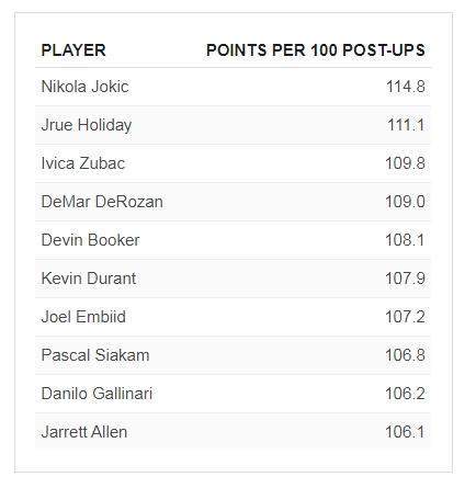 "只有球星能这样做!"一位东部联盟高管在被问及哪些球员应该被信任去经常进行低位背打时说道。上赛季,约基奇一个人就使用了全联盟5.7%的低位背打。作为对比,面筐单打(亚历山大)和挡拆持球(特雷·杨)的联盟领跑者所占比例仅为各自进攻类型的2%。而约基奇在如此大量的低位背打中占据如此统治地位,以至于他一个人就将整个联盟的低位背打效率每100回合提高了1.1分。这项数据统计告诉了我们NBA中的一个铁律:在时代的浪潮中,球星遵循不同的规则,数据分析在考虑球员个人特点时效果最佳,而不是规定一刀切的策略。"如果你拥有天赋异禀的球员,"活塞主教练比克斯塔夫说,"你必须尽力将他们置于优势位置,即使这可能与联盟其他球队的做法背道而驰。"