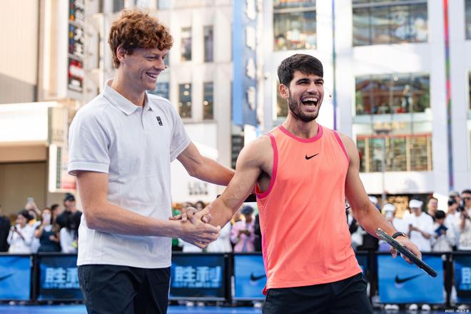 这场表演赛的赛制采用三盘两胜制,虽然是项没有积分的纯表演赛,但是在球迷和网友们看来,阿尔卡拉斯和辛纳一定会跳出表演赛的圈子,像打巡回赛那样展开真刀实枪对决。