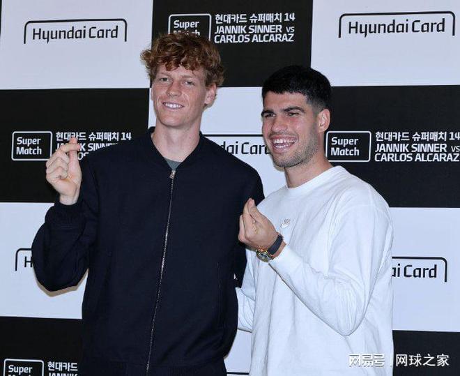 我们首先来关注韩国表演赛。北京时间昨晚,由两位大牌球星、世界第一阿尔卡拉斯和世界第二辛纳出战的仁川表演赛精彩落幕。比赛的结果与很多球迷的预期一致,阿卡以象征性的微弱优势7-5 7-6小胜辛纳,基本上符合球迷普遍认为的世界第一应该比世界第二稍稍强那么一丢丢的心理预期。当然,这是一场不折不扣的表演赛,两人各自拿走230万美元的出场费,因此与现场观众良好互动,玩得开心最重要。赛后,两人都将启程赴墨尔本,开展备战即将到来的澳网。