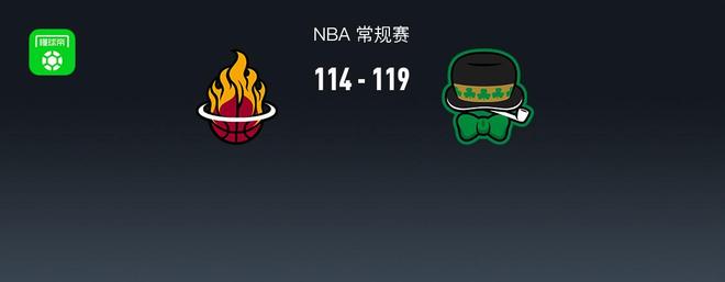 第四节热火亚库契奥尼斯拿下8分,凯尔特人安芬尼-西蒙斯拿下18分,最终热火114-119不敌凯尔特人