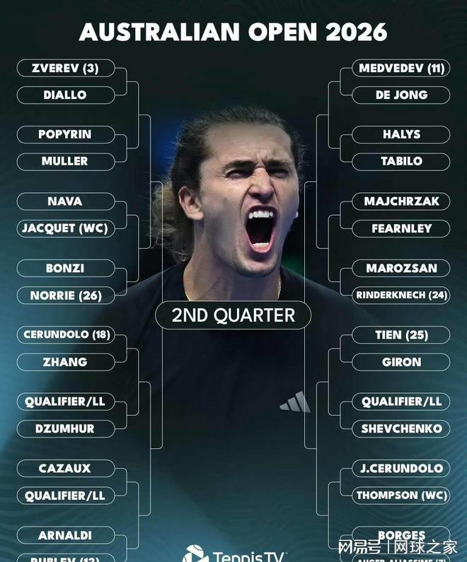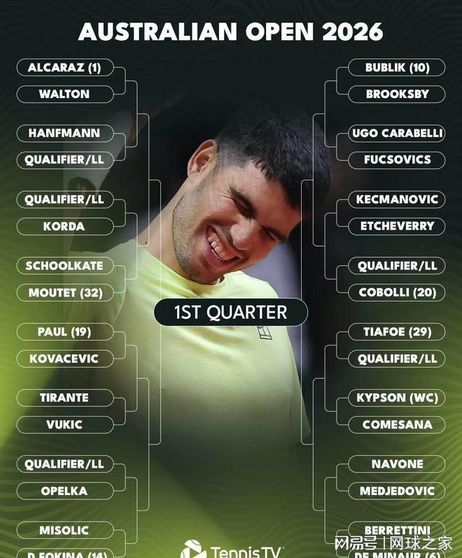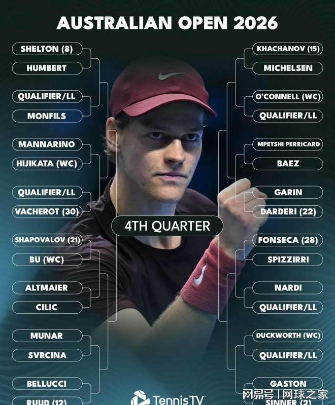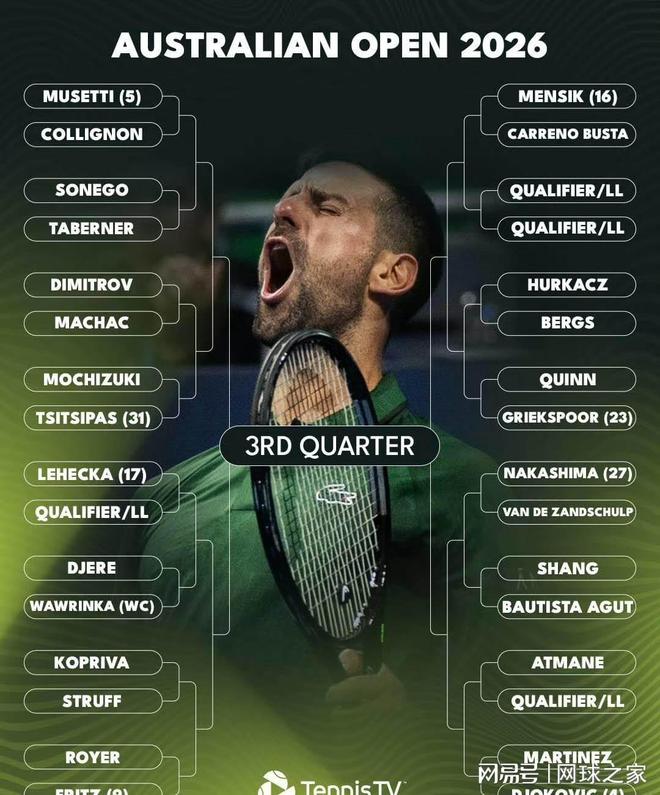 澳网签表公布:德约辛纳同区,阿卡直通四强!