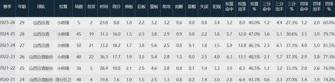 本赛季至今,张宁为山西队出战5场首发2次,场均上阵23.6分钟,得到8.8分3.2板3.2助,三项命中率40%、27.3%和60%,场均得分自菜鸟赛季以来新低,去年夏天签下三年D类顶薪大合同。