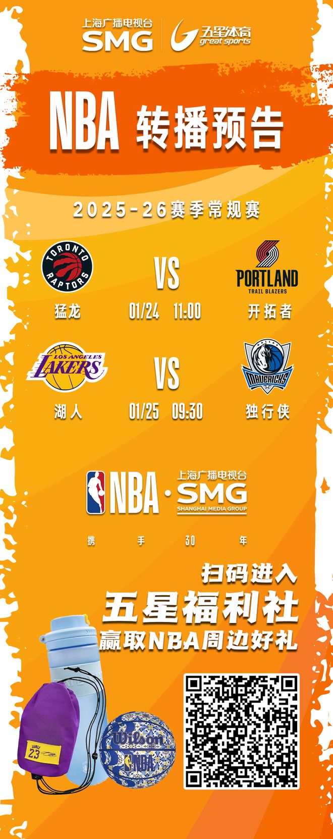 无论如何,由于新秀赛的名单尚未公布,杨瀚森还需要在比赛中尽可能的表现自己来获得更多选票,才能有机会出现在2026年全明星的舞台上!而在明天,波特兰开拓者即将迎来与多伦多猛龙的常规赛较量,两支球队都需要为更好的季后赛名次全力冲击!五星体育将在明天中午11点为您带来本场比赛转播,让我们共同期待杨瀚森的精彩表现!